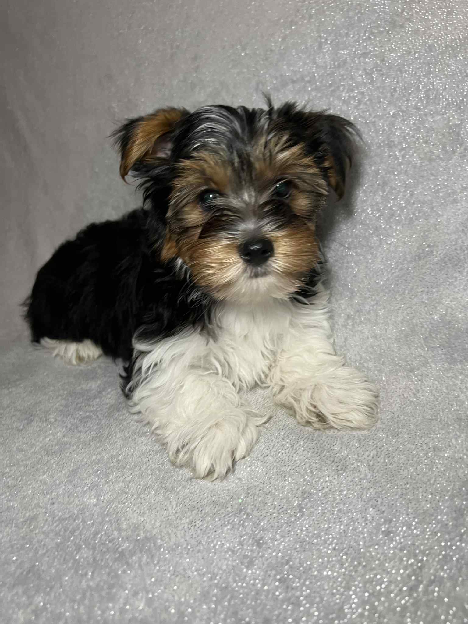 Meet Teddy, our handsome dark Parti boy born June 26th to Olga and Tully. Teddy has a gorgeous coat, expressive eyes, and a sweet temperament that makes him a standout. Raised with love and care, he is developing into a playful, affectionate puppy with the classic Yorkie charm. Teddy will be available to join his forever home once he reaches the appropriate age and milestones. Follow along for updates as he grows.